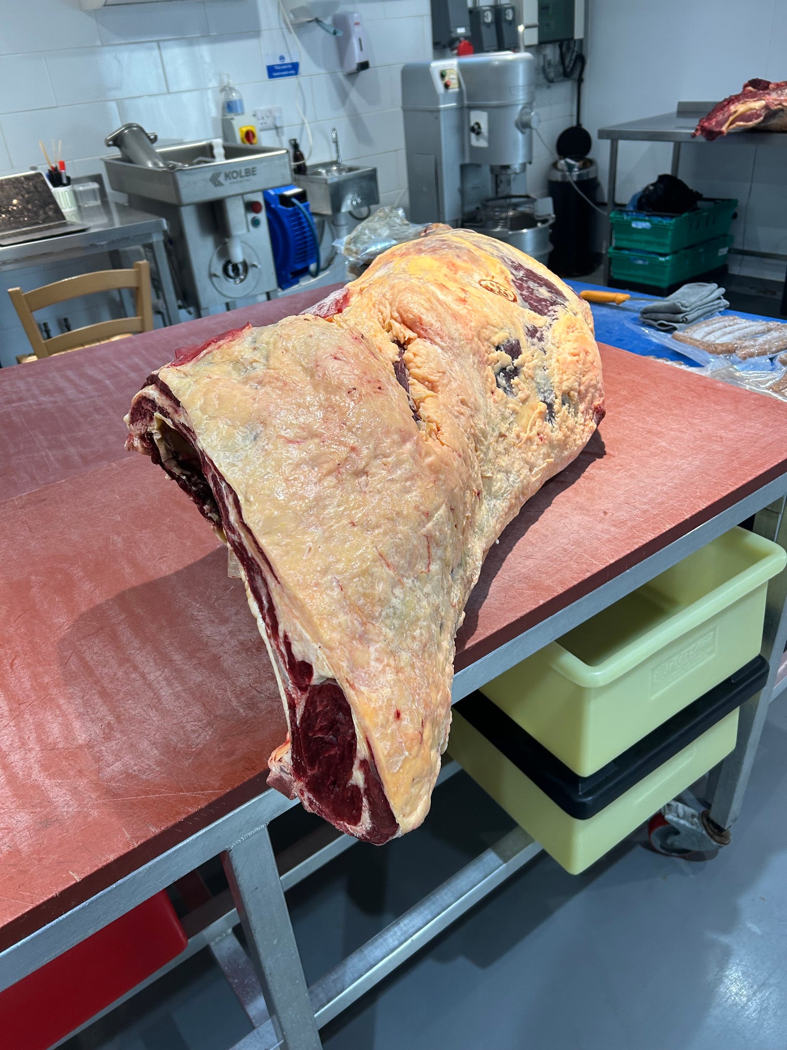 These cows are now dry aging in the butchery here. At first glance they look to be everything you'd want from older grass fed cattle, akin to what you might find in Northern Spain; incredibly rich yellow fat from a long life on grass, and deep waxy rich meat. We are going to dry age these for 30 days or so.